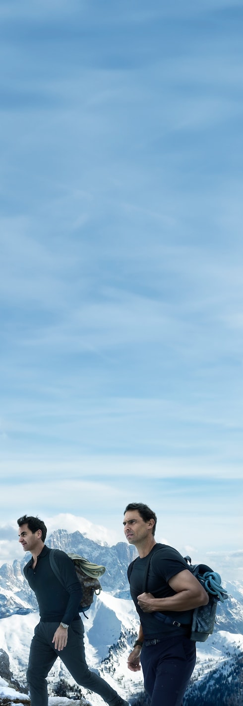 En gravissant les Dolomites italiennes, deux des plus grandes légendes du tennis, Roger Federer et Rafael Nadal, se lancent un défi d’ambition, de dévotion et de découverte — parés de leur équipement Louis Vuitton.