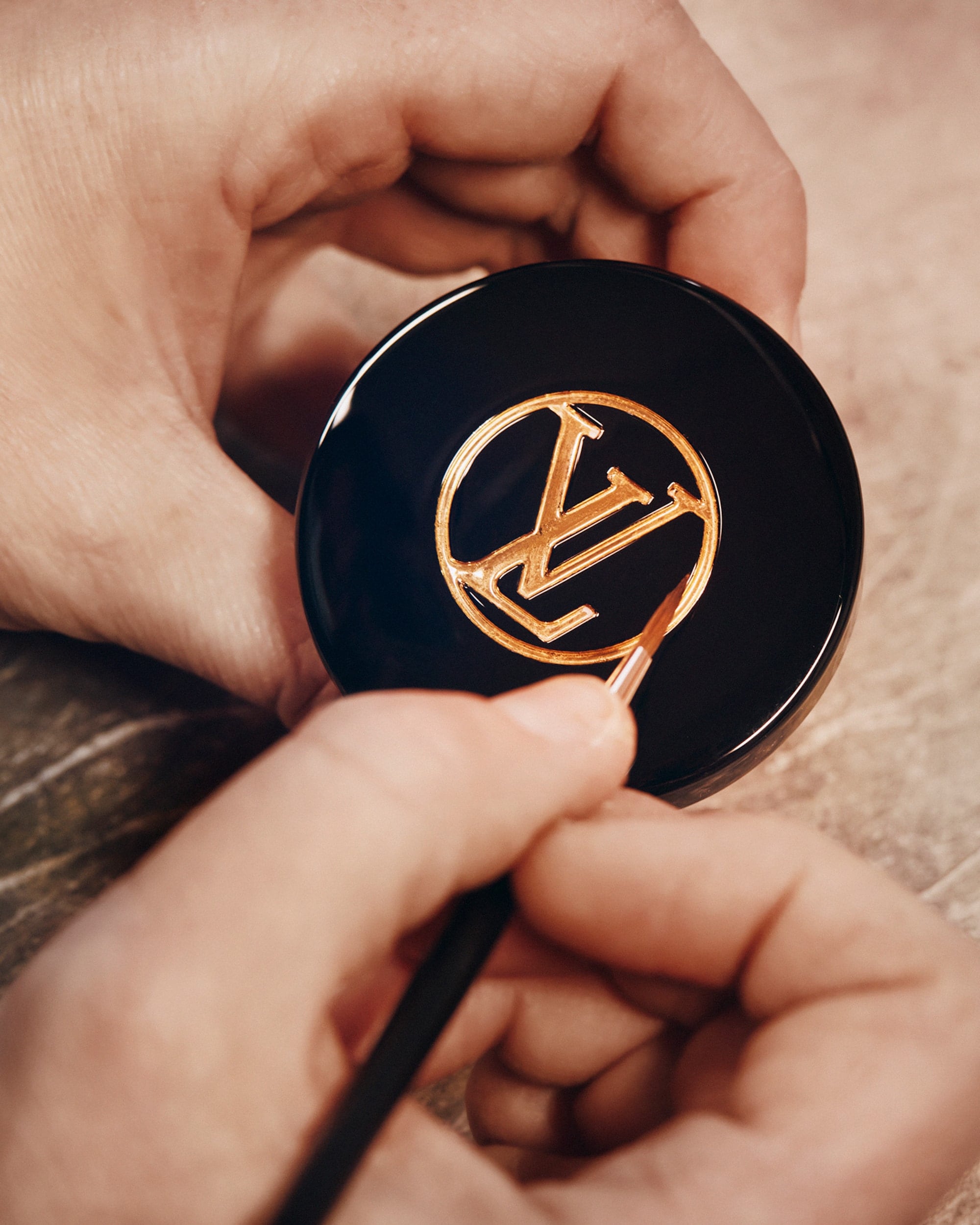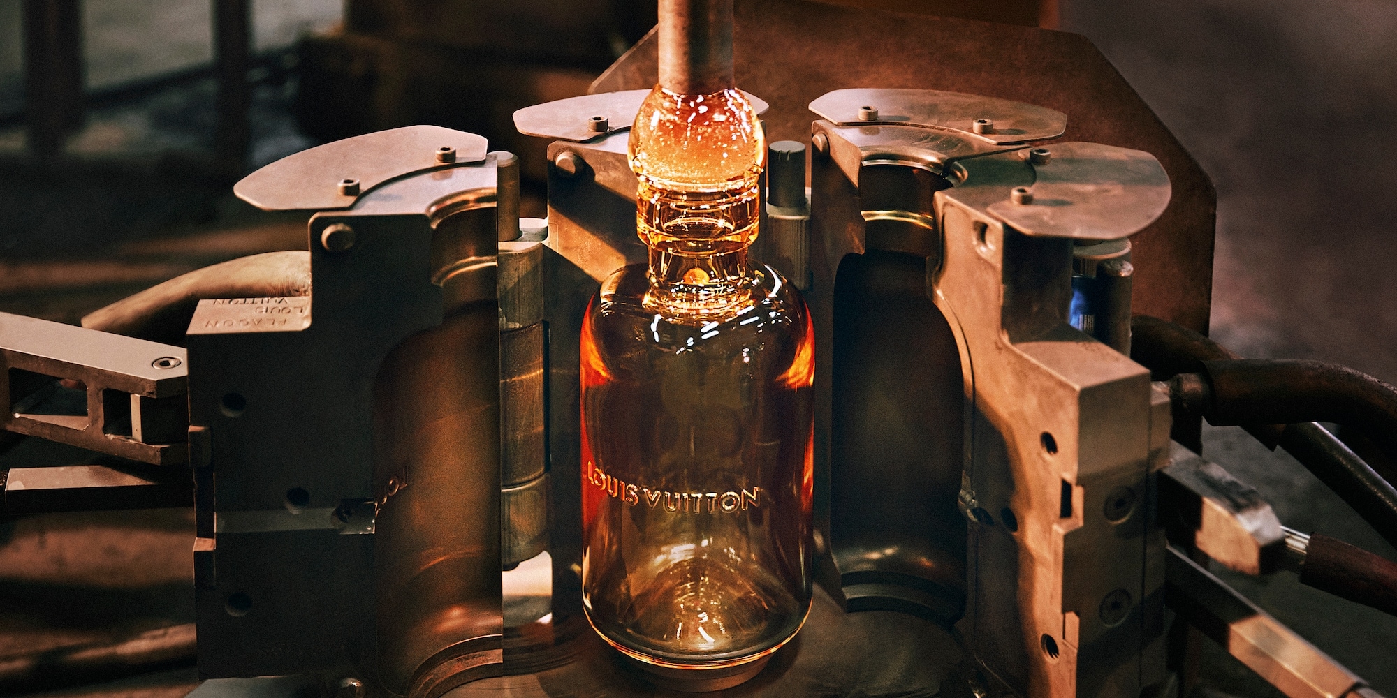 Pour magnifier le design de Marc Newson, Louis Vuitton a fait appel à la cristallerie Baccarat, forte de 250 ans d'histoire et de savoir-faire. Les Maîtres Verriers ont ainsi fabriqué le flacon à partir du cristal le plus précieux et selon les techniques ancestrales du soufflage de verre. Raffinement ultime, le capot en cristal noir doté du logo LV cercle doré à la main vient sublimer l’écrin. Celui-ci repose majestueusement sur un socle en cuir naturel, fabriqué au sein des ateliers Louis Vuitton et dont le cuir délicat et sensible acquiert une patine ambrée unique.