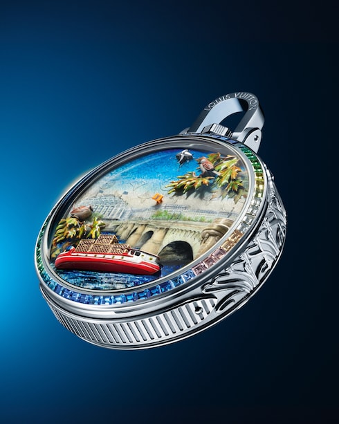 Perpétuant un savoir-faire signature dans l'art des automates, la Maison dévoile une création dans de nouvelles dimensions : la montre de poche. Dotées d'une répétition minutes et d'un mécanisme Jacquemart, ces pièces exceptionnelles reflètent tout le savoir-faire, la finesse créative et l'élégance intemporelle de Louis Vuitton.