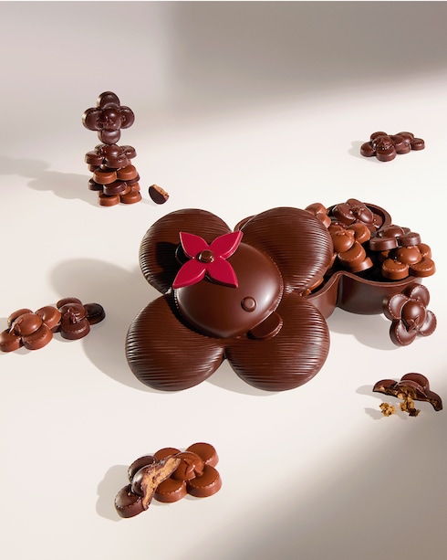 Le Chocolat Maxime Frédéric at Louis Vuitton présente une collection de chocolats inspirés de l'univers de Louis Vuitton, soigneusement emballés dans les iconiques coffrets de la Maison.