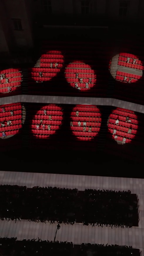 Théâtre des grandes passions, le Palais des Papes d'Avignon prête ses murs historiques à la réflexion de Nicolas Ghesquière sur l'aspect performatif du vêtement et la puissance émotionnelle qu'il véhicule.