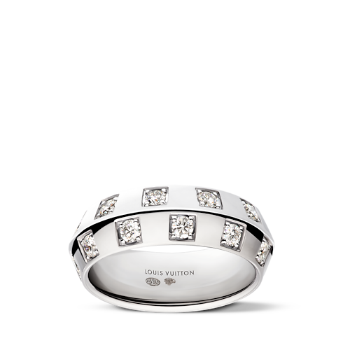 Bague large Le Damier de Louis Vuitton, or blanc et diamants
