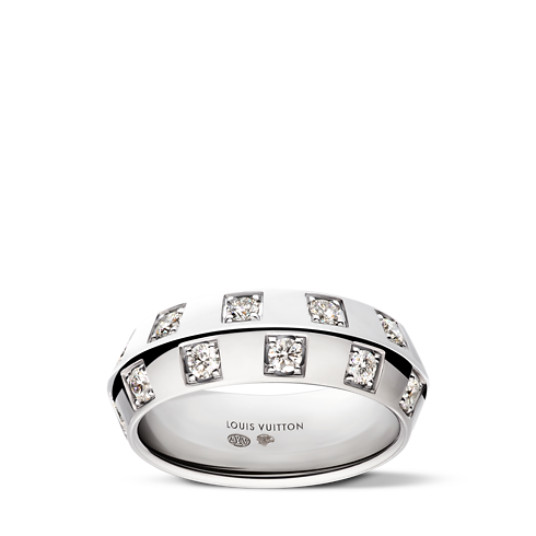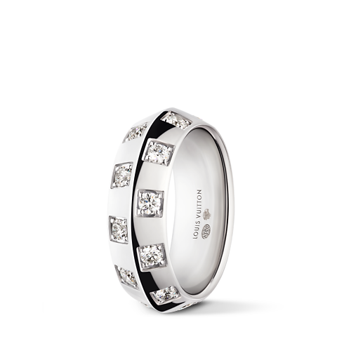 Bague large Le Damier de Louis Vuitton, or blanc et diamants