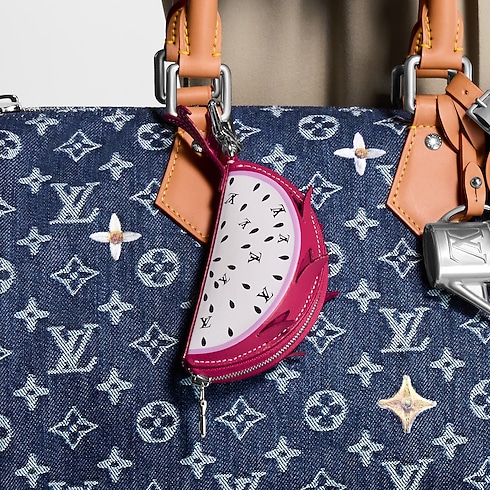 Confectionnée en cuir, la pochette LV Dragon Fruit s’inspire de ce délicieux fruit tropical. Habillée d’un cuir rose éclatant, elle met en scène les graines du fruit, sous la forme d’une délicate constellation d’initiales de la Maison. Doté d’une fermeture éclair, ce bijou de sac permet d’accueillir des clés ou une paire d’écouteurs sans fil.