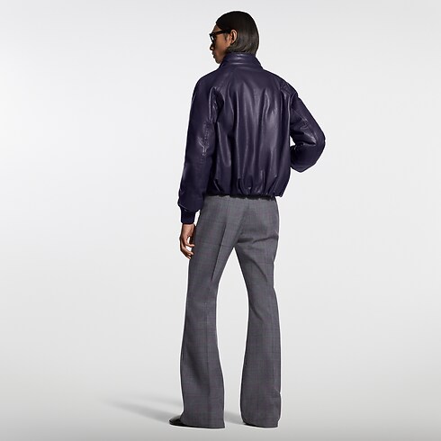 Ce blouson en cuir issu du défilé Printemps-Été 2026 est confectionné en cuir de veau lisse au tannage naturel. Légèrement matelassé pour offrir davantage de chaleur et de structure, ce modèle se décline dans un coloris violet intense inspiré de l’Inde, thème phare de cette saison. Sa coupe courte et contemporaine est sublimée par des finitions en cuir côtelé aux poignets et à la taille, tandis que l’inscription Louis Vuitton Paris dorée orne élégamment la poitrine.