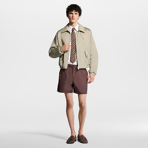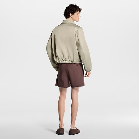 Ce blouson beige élégant se distingue par sa conception réversible, idéale pour la mi-saison. L’extérieur en satin technique uni est rehaussé d’un col en cuir Damier embossé ton sur ton, ainsi que d’un ornement LV en métal sur la poitrine. Porté sur l’envers, il révèle une doublure en coton ornée d’un jacquard Monogram. Les poignets et la taille élastiqués dessinent une silhouette décontractée, qui s’accorde naturellement aux tonalités classiques de la collection.
