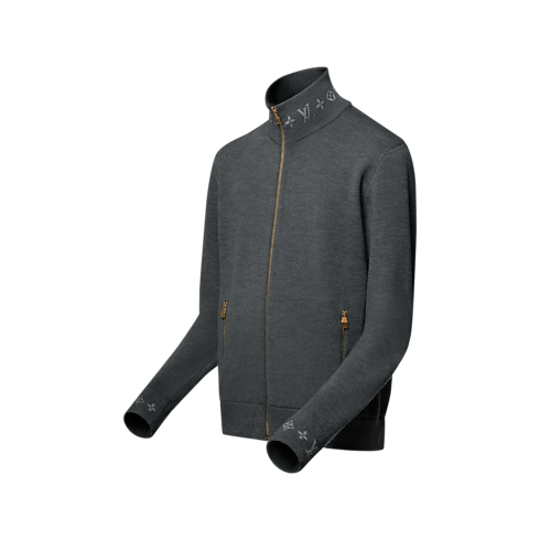 Décliné en gris foncé, ce blouson double-face se compose d’une maille de laine biologique à l’extérieur et de coton doux à l’intérieur. Alliant le confort à l’élégance, sa silhouette classique est rehaussée de détails Monogram en jacquard sur le col et les poignets, qui restent visibles lorsqu’un manteau est enfilé. Marié à un pantalon assorti, ce modèle compose une parfaite tenue de voyage.