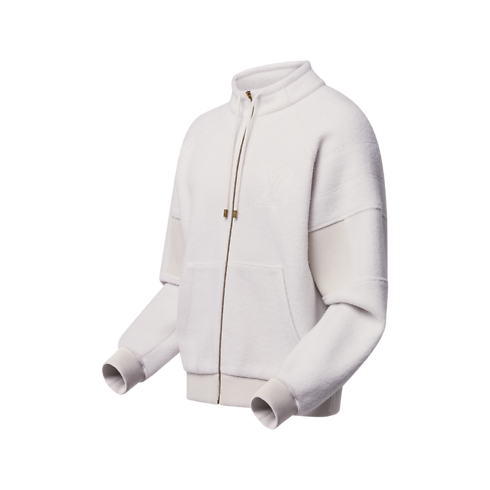 Inspiré des tenues loungewear, ce blouson à l'élégance décontractée forme le compagnon de voyage idéal. Il s'habille de polaire de laine chaude et texturée dans un coloris crème intemporel. Son allure sportive habillée adopte un col à cordon de serrage et des manches raglan côtelées au niveau des coudes pour faciliter les mouvements. Ponctué de surpiqûres à l'effet matelassé et d'une broderie LV sur la poitrine, ce modèle peut constituer un ensemble confortable avec le pantalon assorti.