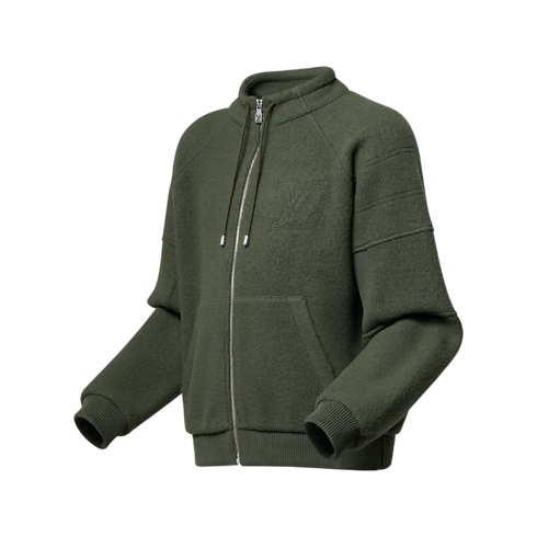 Inspiré des tenues loungewear, ce blouson à l'élégance décontractée forme le compagnon de voyage idéal. Il s'habille de polaire de laine chaude et texturée dans un coloris vert olive intemporel. Son allure sportive habillée adopte un col à cordon de serrage et des manches raglan côtelées au niveau des coudes pour faciliter les mouvements. Ponctué de surpiqûres à l'effet matelassé et d'une broderie LV sur la poitrine, ce modèle peut constituer un ensemble confortable avec le pantalon assorti.