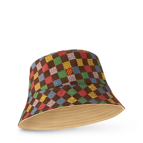 Ce bob LV Vers Damier réversible présente un nouveau motif multicolore enjoué combinant l'imprimé Damier classique et le thème LV Vers, un ajout récent au répertoire de Pharrell Williams. La signature « Marque L. Vuitton Déposée » figure sur le côté à carreaux et la signature LV Vers United sur le côté uni.
