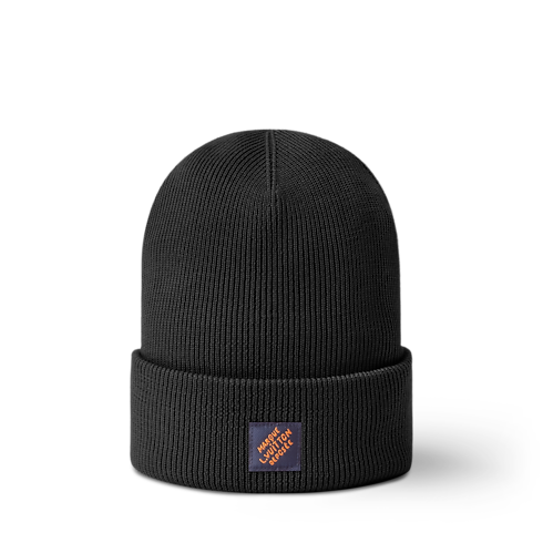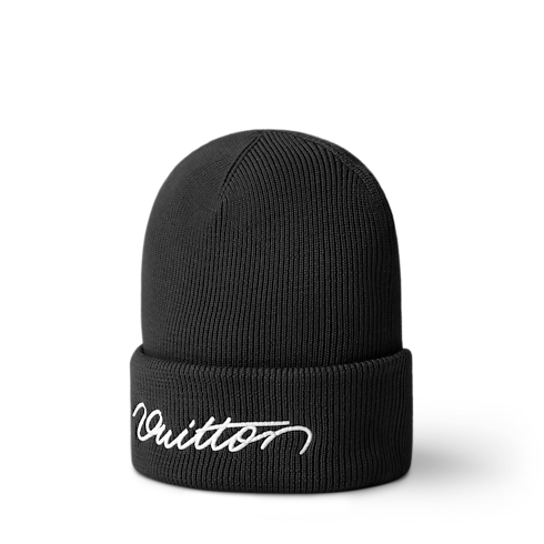 Empreint d'un esprit citadin, ce bonnet Signature offre un design sobre qui souligne son style affirmé. Confectionné en Italie dans une laine unie, il se pare d'une large inscription « Vuitton » manuscrite à l'avant. Une petite étiquette tissée « Marque L. Vuitton Déposée » signe discrètement la partie arrière.