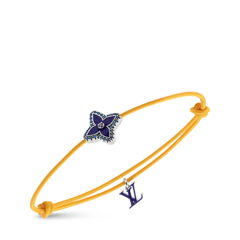 Le bracelet cordon Monogram Stesia incarne l’harmonie subtile entre textures, couleurs et matières. La perle émaillée en forme de fleur est soulignée d’un contour serti de strass, avec un centre assorti. Un cordon ajustable à nœuds et le charm Initiales émaillé viennent tempérer son éclat pour en faire un bijou à porter au quotidien.