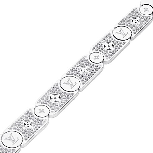 Inspiré par la personnalité unique et extravagante de Gaston-Louis Vuitton, petit-fils de Louis Vuitton, ce bracelet gourmette Masterpiece apporte une nouvelle dimension au savoir-faire de la haute joaillerie. L'or blanc poli à la main est percé au laser et gravé de l'emblématique signature Monogram, rehaussée de diamants éblouissants. Cette création spectaculaire, ancrée dans l'héritage de la Maison, peut être associée à d'autres pièces de la collection Les Gastons Vuitton.