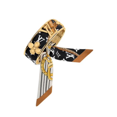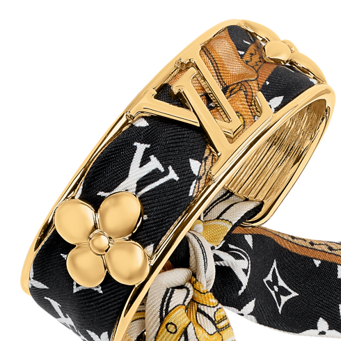 D’une originalité saisissante, le bracelet LV Initiales en soie marie l’éclat précieux du métal doré à l’opulence de la soie. Ornée des emblématiques fleurs de Monogram et des LV Initiales de la Maison, cette manchette finement travaillée s’agrémente d’un bandeau Monogram amovible en soie. Ce bijou remarquable dévoile une nouvelle manière d’arborer la signature Louis Vuitton.