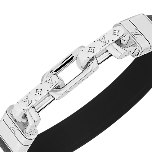 Ce bracelet LV Links présente une lanière en cuir et en toile emblématique de la Maison, associée aux célèbres maillons Monogram. Minutieusement gravées des LV Initiales de part et d’autre, les pièces métalliques argentées signent ce modèle. Audacieux et masculin, ce bijou offre un esprit rock à toute tenue.