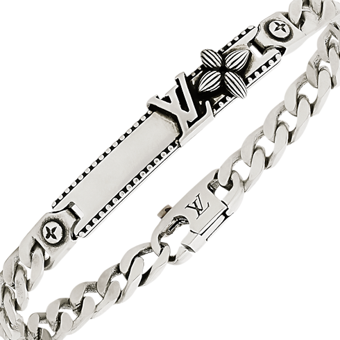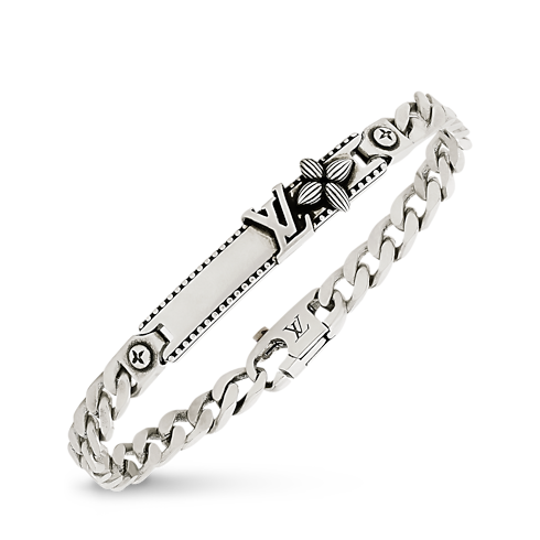 Ce bracelet LV Whisper Gourmette est une réinterprétation avant-gardiste du modèle à plaque d'identité emblématique. Composé de maillons tressés et d’un fermoir gravé, il est orné de deux LV Initiales et d’une unique fleur de Monogram. Le résultat est une pièce décontractée qui séduit portée seule ou élégamment superposée à d’autres bracelets.