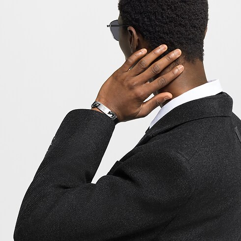 Ce bracelet Monogram Tied Up se compose de laiton plat argenté entouré de cuir noir. Au centre, les LV Initiales sont reliées de chaque côté par des maillons plats entrelacés ornés de fleurs de Monogram. Idéal à porter avec d'autres pièces de la capsule Tied Up, il évoque une élégance naturelle et audacieuse.