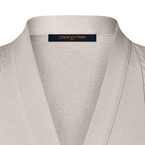 Ce cardigan ivoire s’impose comme un indispensable de la garde-robe formelle actuelle. Confectionné dans un somptueux mélange de coton et de soie, il se distingue par sa maille pointelle légère et aérienne, intégrant des bandes de motifs Monogram et Damier ton sur ton. Alliant confort et élégance preppy, il se porte aussi bien avec un costume qu’avec un chino sophistiqué pour composer une silhouette raffinée dans l’air du temps.
