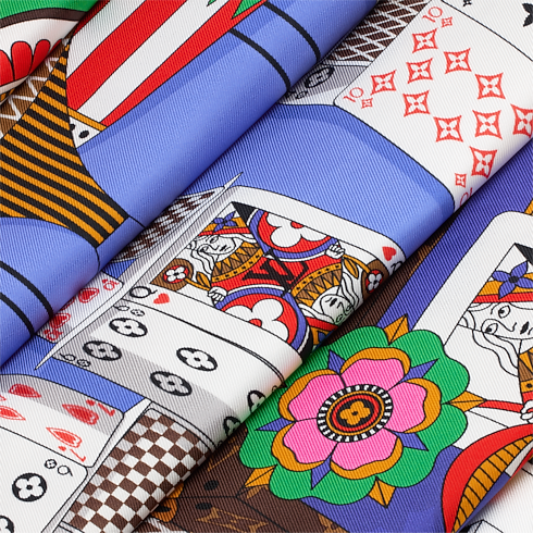 Confectionné en soie somptueuse, ce carré LV Card Game évoque l’esprit insouciant de l’enfance et des jeux. Son imprimé coloré associe un château de cartes à des illustrations évoquant le voyage : une malle Louis Vuitton, des montgolfières, une automobile vintage… Cet accessoire à porter autour du cou ou à encadrer au mur séduira les amateurs de foulards en soie aux motifs élaborés.