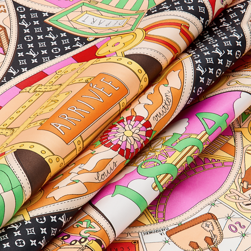 Ce carré LV Journey en soie invite à entreprendre à une aventure extraordinaire dans l'univers du voyage. Son imprimé sophistiqué et ludique associe des illustrations de bagages, de montgolfières, de trains, de bateaux, d'avions, de dés et de nuages aux motifs Monogram et Damier emblématiques de la Maison. Son style remarquable et intemporel en fait un accessoire incontournable.