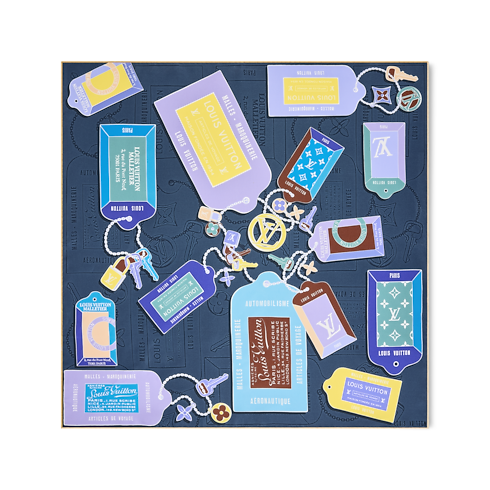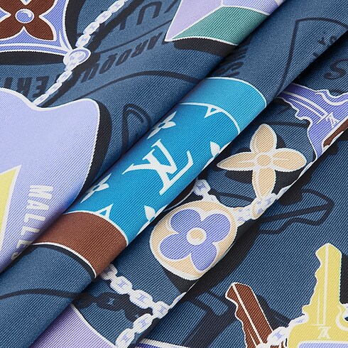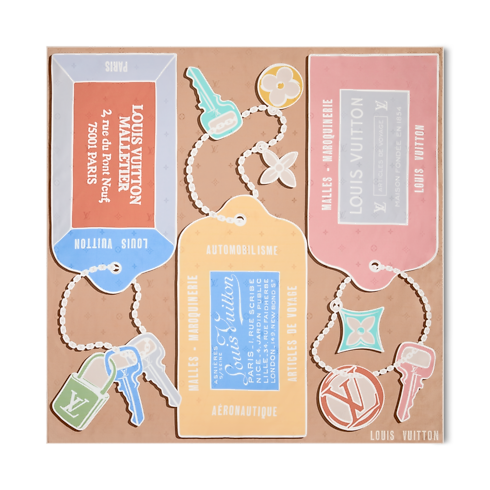 Pièce remarquable, ce carré Tag And Go évoque de façon artistique la tradition malletière de la Maison. Imprimé sur de la soie fine, il met en scène une série d’étiquettes de bagages au style vintage, associées à des clés qui rappellent les serrures spéciales inventées par Louis Vuitton lui-même. Ce modèle qui sublime toutes les garde-robes offre une source élégante d’inspirations de voyage.