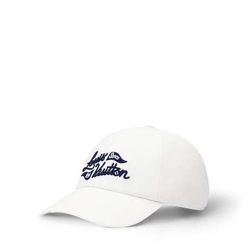 D’un blanc éclatant, cette casquette de golf égaye les journées sur le green. Elle s’orne d’une signature cursive « Louis Vuitton Since 1854 » et de fanions bleus brodés sur l’avant. Au dos, une patte réglable dotée d’une boucle carrée gravée LOUIS VUITTON permet d’ajuster la taille pour offrir un porté agréable et élégant.