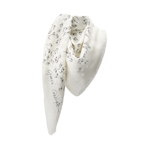 Dans le cadre de sa collaboration exclusive avec Louis Vuitton, la styliste et icône de mode Grace Coddington a imaginé le motif de ce châle LV Mice Monogram Classique. Il fait figurer un imprimé fantaisie de souris jouant sur un fond tissé en jacquard Monogram. Confectionnée dans un somptueux mélange de soie et de laine, cette pièce confortable et élégante sublime chaque silhouette d’une note de créativité inédite.