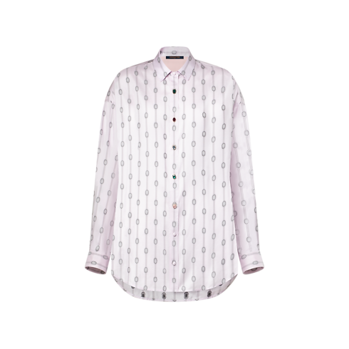 Confectionnée en soie fluide rehaussée d’un imprimé à rayures orné de motifs bijoux graphiques, cette chemise incarne l’élégance et s'agrémente de boutons-bijoux dépareillés ludiques sur le devant. Sa coupe oversize ultralégère est complétée par un col et des poignets boutonnés qui lui confèrent une allure élégante classique.