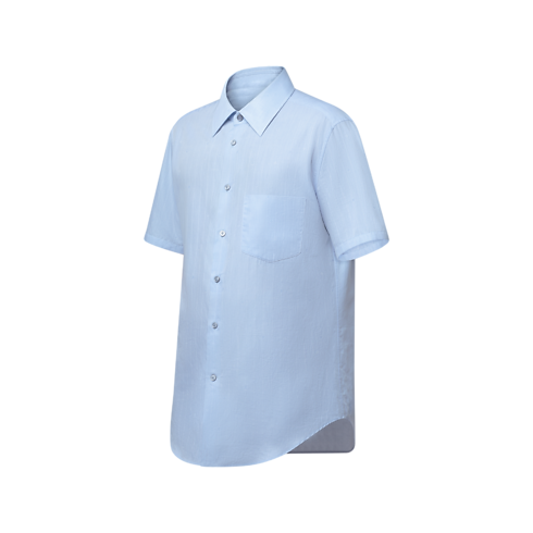Idéale pour les beaux jours, cette chemise à manches courtes habillée est confectionnée en coton biologique bleu pâle. Elle s'habille d'un motif jacquard Monogram Pinstripes ton sur ton. Un détail LV orne le bouton du haut, tandis qu'une étiquette discrète à LV et fleurs de Monogram agrémente le bas de la patte de boutonnage. Cette pièce peut être associée au costume assorti afin de composer un look de bureau élégant.