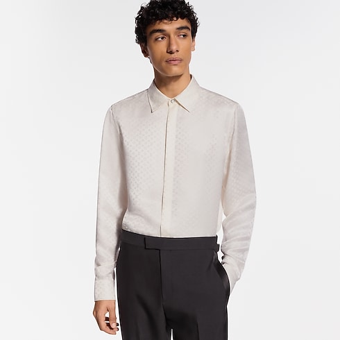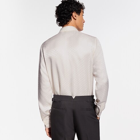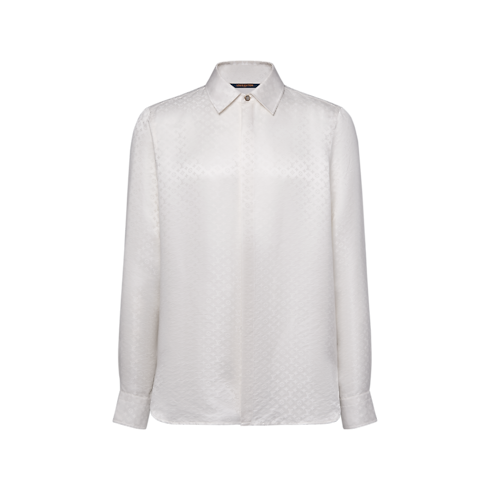 Cette chemise en soie blanche est un choix élégant pour les soirées. Elle est ornée d’un motif Mini Monogram en jacquard, dont le jeu subtil de textures mates et satinées met en valeur le drapé fluide et l’éclat naturel du tissu. Ce modèle se porte aussi bien avec une tenue de soirée que seul pour composer un style raffiné.