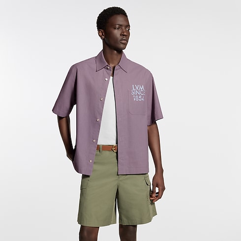 Cette chemise à manches courtes au tombé impeccable sublime les teintes subtiles de la saison dans un lilas élégant. Issues du défilé Printemps-Été 2026, les signatures imprimées à l’effet peint à la main apportent une note graphique sous la forme du lettrage L.V.M. Legacy sur la poche de poitrine et du motif Alphabet LV au dos. Des boutons effet nacre offrent une finition éclatante.