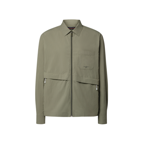 Cette chemise kaki à manches longues et fermeture éclair s’inspire de l’esthétique alpinisme chic du défilé Printemps-Été 2026, grâce à son tissu technique léger et ses détails pratiques. Deux poches zippées placées de façon asymétrique apportent une touche audacieuse et contemporaine à l’avant, tandis qu’une signature brodée ton sur ton orne la poche de poitrine. Cette pièce se porte aussi bien façon chemise classique que superposée en surchemise sur un tee-shirt.