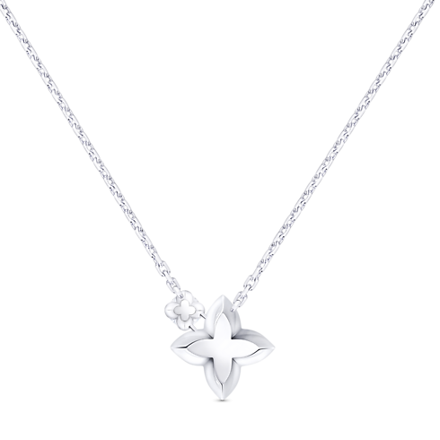 Suspendu à une chaîne ultra-fine en or blanc 18 karats, ce collier à double pendentif LV Diamonds présente de multiples pavages de diamants, ainsi qu'une pierre de taille brillant au centre. Le motif pavé et le sertissage de la pierre centrale adoptent la forme des fleurs de Monogram emblématiques de Louis Vuitton. Ce chef-d'œuvre de haute joaillerie fine constitue un cadeau hors du commun pour les occasions d'exception. Il s'accompagne d'un certificat LV Diamonds, un document numérique unique et immuable concernant les caractéristiques du diamant central et de son parcours, de l'extraction au sertissage final. Ce certificat sécurisé bénéficie de la technologie du consortium Aura Blockchain.