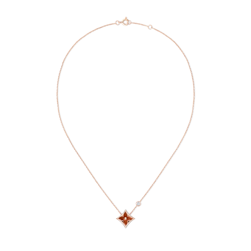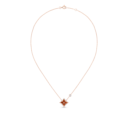 Collier pendentif Star Blossom BB, or rose, cornaline et diamant