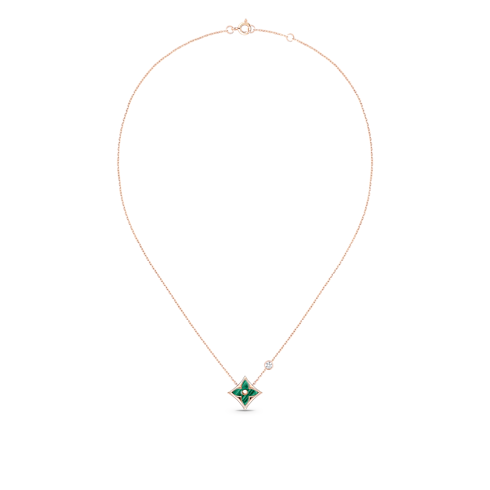 Collier pendentif Star Color Blossom BB, or rose, malachite et diamant