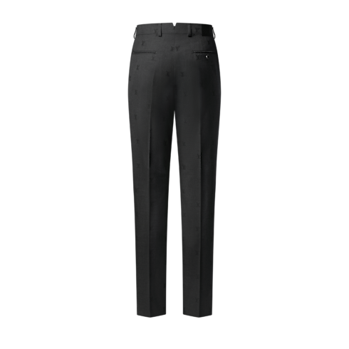 Ce costume LV Blason Pont Neuf en pure laine gris foncé est un choix chic et intemporel pour le bureau. Il s'habille d'un jacquard à motif LV Blason discret et d'une doublure à signature répétée. La silhouette élégante se compose d'une veste Pont Neuf droite et d'un pantalon classique. Parmi les touches finales se trouvent une languette brodée des initiales LV sur la hanche droite du pantalon, ainsi que des étiquettes emblématiques.