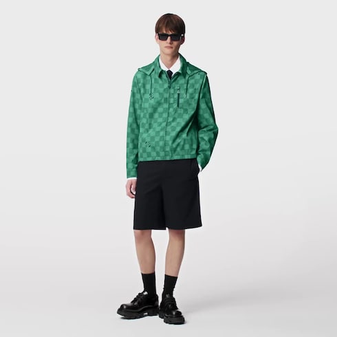Illustrant l'esprit maritime de cette collection, ce coupe-vent technique à capuche allie fonctionnalité et style. Il s'agrémente d'un imprimé Damier Monogram, alternant détails micro Monogram et signatures « Marque L. Vuitton Déposée » sur certains carreaux. Avec sa palette sophistiquée de bleu et de vert, cette pièce graphique insuffle une note de fraîcheur nautique aux looks décontractés.