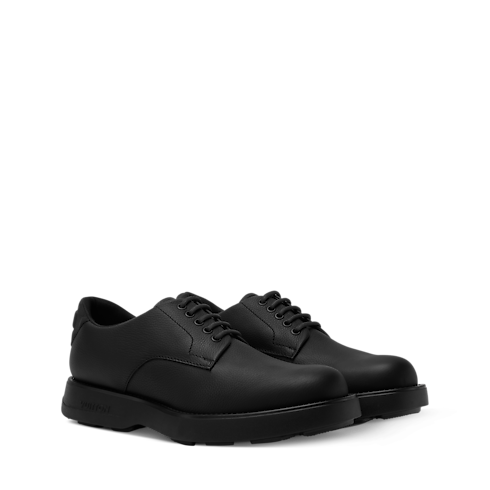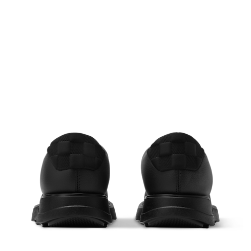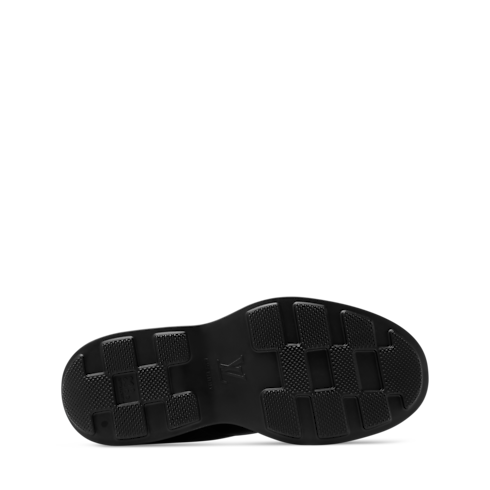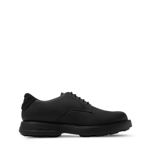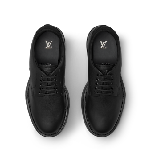 Ce derby Bastille est confectionné en cuir de veau Aerogram, emblématique de la maroquinerie Louis Vuitton, qui se distingue par son grain fin, sa finition mate et sa résistance. La tige se dote de lacets ronds en textile et d'une bordure en néoprène à motif Damier embossé à l'arrière. Ce modèle présente une semelle extérieure en gomme épaisse et légère, ornée de la signature Vuitton sur le côté.