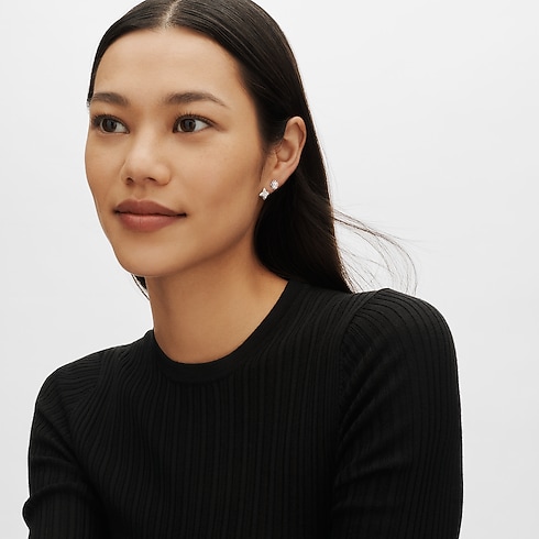 Bien plus qu’un bijou, cette double puce d'oreille de la collection LV Diamonds est une signature inspirée d’une icône Louis Vuitton : le motif Monogram emblématique. Un motif pavé en or blanc 18 karats serti de diamants et en forme de LV Monogram Star sublime la pierre centrale taillée en brillant, reposant dans une fleur de Monogram. Ludique et s’accordant avec tous les styles grâce à sa tige ajustable, cette double puce d'oreille représente un cadeau idéal à conserver précieusement. Cette pièce s’accompagne d'un certificat LV Diamonds, un document numérique unique et immuable précisant les caractéristiques du diamant central et l'ensemble du parcours, de l’extraction au sertissage final. Ce certificat sécurisé bénéficie de la technologie du consortium Aura Blockchain.