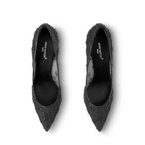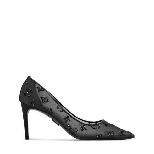 Intemporel et élégant, cet escarpin Gala est confectionné en mesh translucide dévoilant discrètement le pied. Cette matière est incrustée de cristaux Swarovski™ scintillants qui dessinent le motif Monogram emblématique de la Maison. Le bout pointu féminin, le talon haut et la fine semelle extérieure en cuir complètent ce soulier sophistiqué et idéal en soirée.
