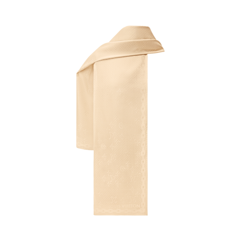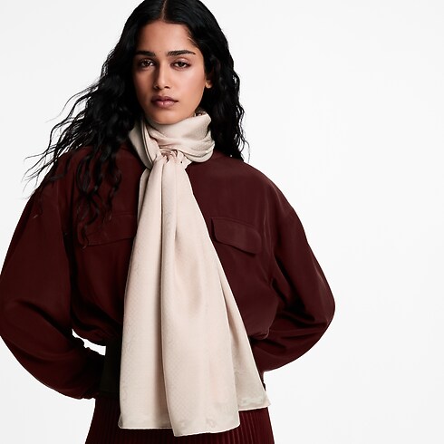Cette étole LV Monogram Shadow propose une variation originale et créative d’une signature classique de la Maison. Confectionnée en soie ultra-fluide, elle met en scène un motif jacquard ton sur ton de fleurs de Monogram et des LV Initiales, rehaussé d'un effet d’ombre subtil. Idéale pour les occasions festives, cette pièce sophistiquée sublime les robes et les ensembles les plus élégants.