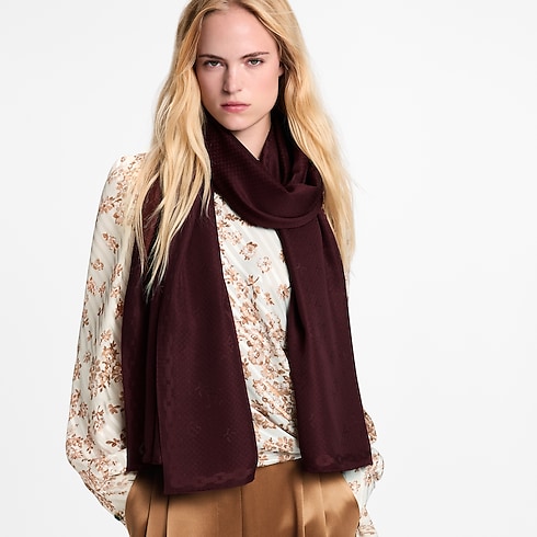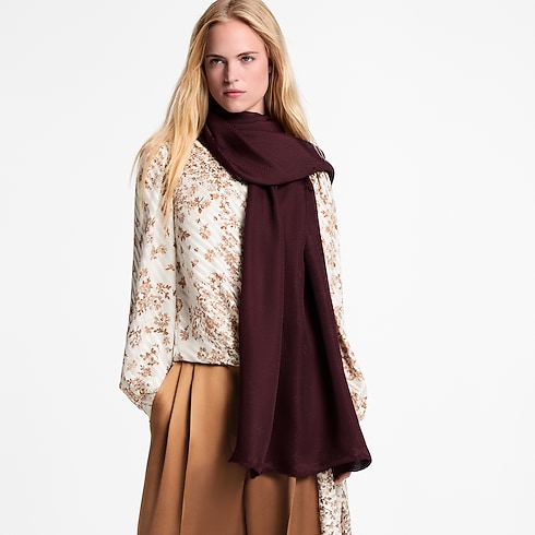 Cette étole LV Monogram Shadow propose une variation originale et créative d’une signature classique de la Maison. Confectionnée en soie ultra-fluide, elle met en scène un motif jacquard ton sur ton de fleurs de Monogram et des LV Initiales, rehaussé d'un effet d’ombre subtil. Idéale pour les occasions festives, cette pièce sophistiquée sublime les robes et les ensembles les plus élégants.