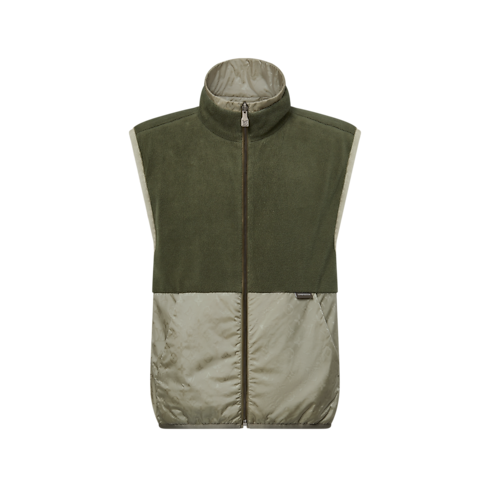 Ce gilet réversible décliné dans des tons verts élégants est réalisé en tissu technique habillé d’un motif jacquard Monogram. Un empiècement en polaire verte agrémente un côté de la partie principale pour lui apporter un surcroît de chaleur et un effet color-block sportif. Addition raffinée à la palette de nuances neutres et douces de cette collection, cette pièce joue les superpositions avec les tenues printanières qu'elle signe d'une note emblématique discrète.