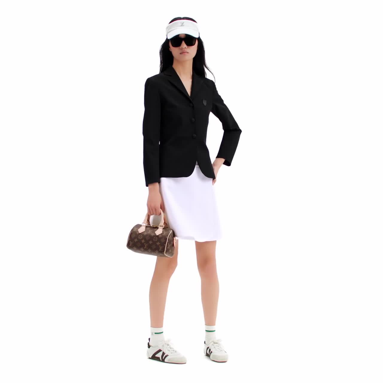 Cette jupe contemporaine en jersey technique incontournable de la Maison mise sur un esprit sportif empreint de fraîcheur. Sa coupe trapèze est légèrement adoucie par l'avant portefeuille à bord incurvé. Quatre boutons-pression dorés ajoutent une note métallique chic au niveau de la taille.