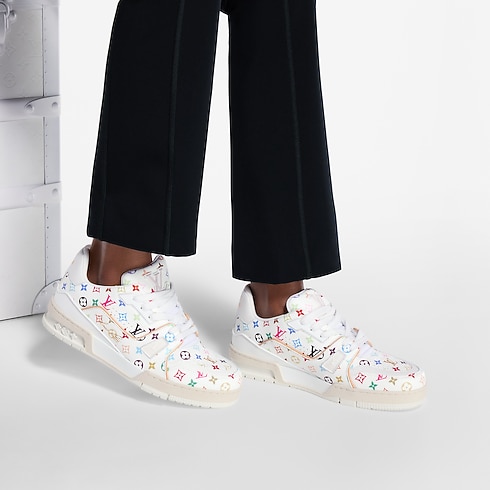 Cette sneaker LV Trainer est revisitée en toile Monogram Multicolore, le motif haut en couleur imaginé par l’artiste Takashi Murakami pour Louis Vuitton. Une bordure en cuir naturel emblématique souligne le montage de ce modèle qui évoque les chaussures de basket-ball vintage. Les détails distinctifs incluent l’inscription manuscrite Louis Vuitton et #54 en référence à 1854, l'année de fondation de la Maison.