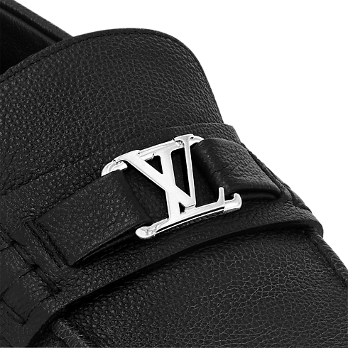 Confectionné en cuir de veau grainé souple et léger, ce mocassin Estate présente une tige rehaussée d'un accessoire LV Initiales en métal argenté.