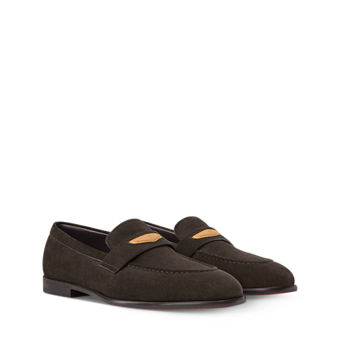 Confectionné en cuir de veau velours, ce mocassin LV Gent offre un toucher d'une douceur et d'une souplesse exceptionnelles grâce à la qualité de sa matière et à son montage sacchetto traditionnel. La bride sur la tige est rehaussée d'un empiècement en cuir naturel embossé des LV Initiales et souligné de coutures jaunes, évoquant les pièces de maroquinerie de la Maison.