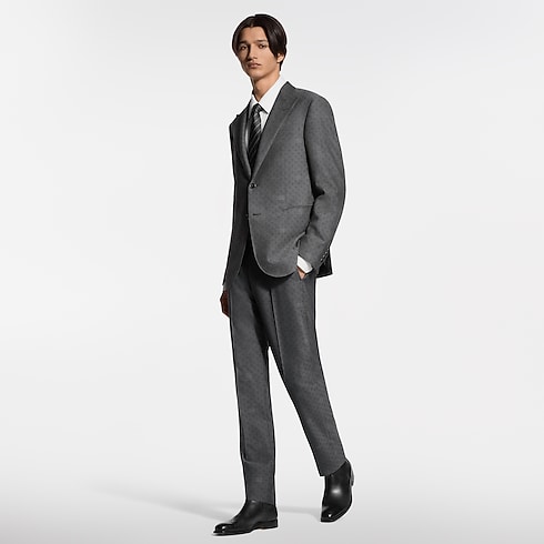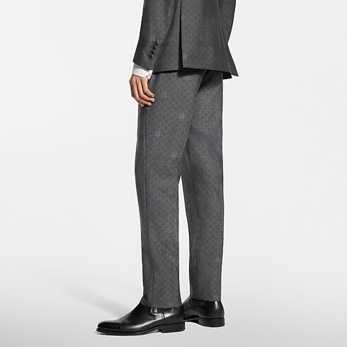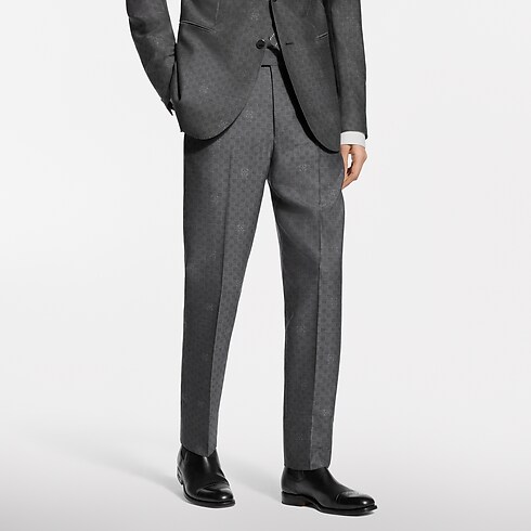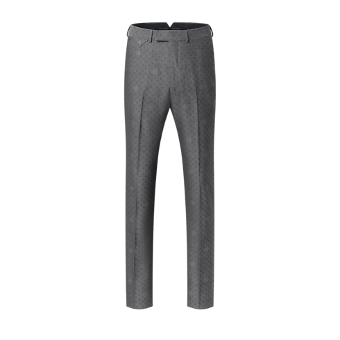 Confectionné dans un gris foncé intemporel, ce pantalon classique élégant se révèle idéal pour les occasions professionnelles habillées. La laine fine est tissée jacquard en ton sur ton et sublimée du motif Mini Damier Seeds. Celui-ci intègre des fleurs de Monogram à l’effet moucheté délicat, tandis qu’une étiquette LV tissée signe l'arrière de la taille. Une veste assortie complète cet ensemble raffiné.
