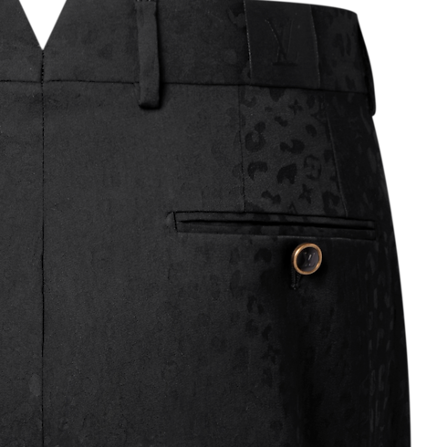 Ce pantalon classique noir aux lignes épurées s’illustre par son somptueux motif LV Cheetah, signature de cette collection. Confectionné en jacquard satin de laine issue de sources responsables, le motif animalier graphique intègre avec subtilité le Monogram dans un jeu raffiné de textures mates et brillantes. Associé à la veste assortie, il compose un ensemble de soirée saisissant qui se distingue avec élégance.