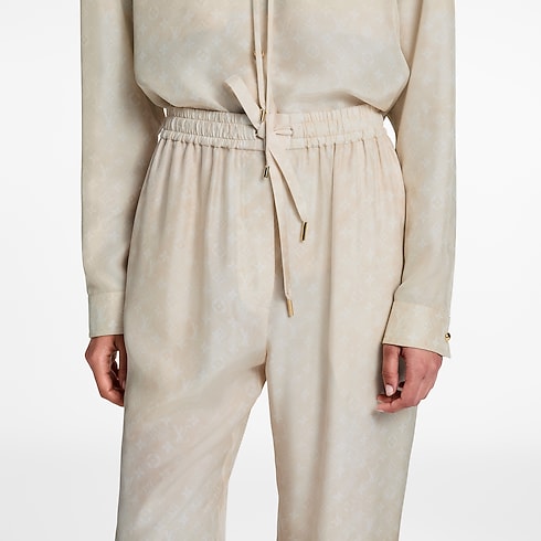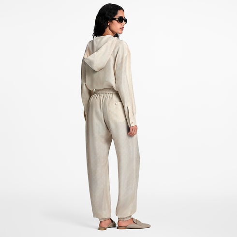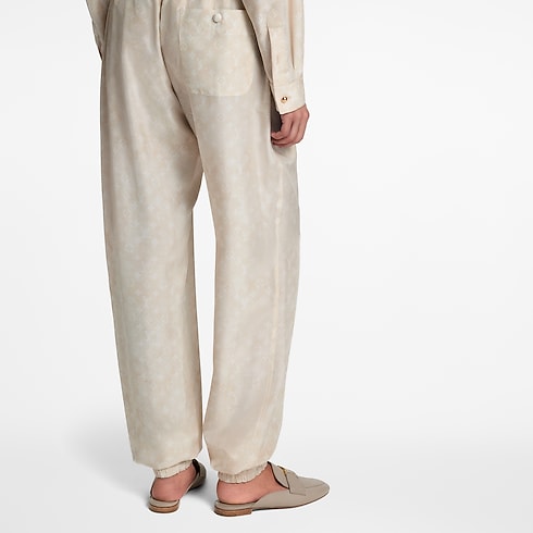 Ce pantalon de jogging sportif en soie fluide est sublimé par un motif Monogram discret qui lui confère une finition onirique. La coupe droite est dotée d’une taille et de chevilles élastiques pour offrir davantage de confort, ainsi que de cordons légers qui soulignent son allure décontractée. Ce modèle possède également une poche plaquée boutonnée à l’arrière.